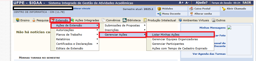 Caminho para acessar o menu Listar Minhas Ações