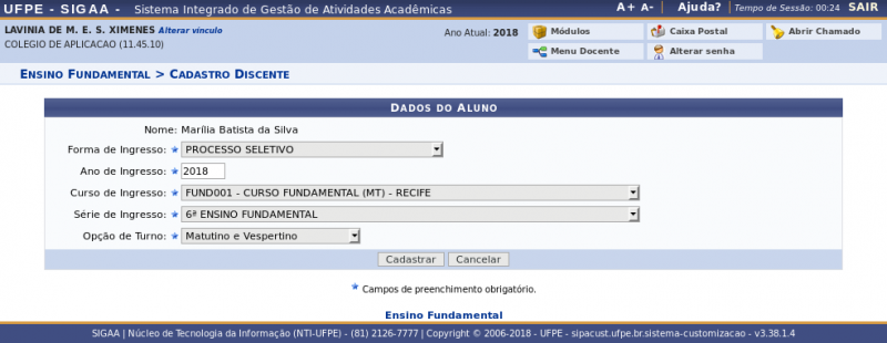 Dados acadêmicos do discente.